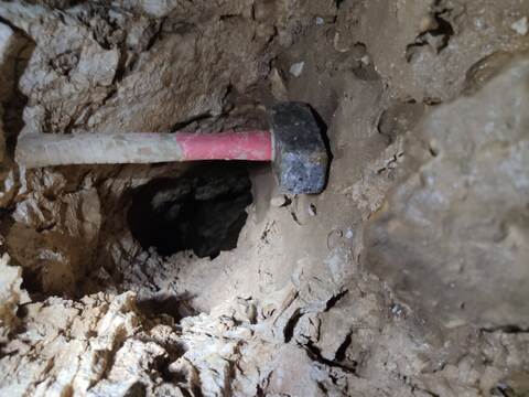 Četrti dan sva z Zdravkom iskala tiste stare jame, ki so jih naši predhodniki označili in raziskali, nato pa se jim ni ljubilo pisati zapisnika, zato sva jih izmerila midva. Ob vrnitvi v bivak je Mitja izrazil željo, da mu skopljemo grob in Zdravko se je naloge z veseljem lotil. Zraven ognjišča je skopal luknjo, ki so jo obdajali kamni, tako da je res zgledalo kot kakšno ležišče, pri tem pa sem mu pomagal tudi jaz, ko mi je govoril kje in kako moram udariti, kot nekakšen šepetalec kamnom. Klemen in Anže sta se spustila v Podgurko. Tam sta preplezala do okna, kakšnih 15 metrov nad dnom zadnjega brezna, vendar kakšnega perspektivnega nadaljevanja nista našla. Lotila sta se iskanja v podoru na dnu brezna in Anže je kmalu med nestabilnimi bloki skal našel nadaljevanje, ki pa ga bo treba še dodatno razširiti in utrditi.