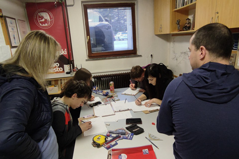 Obiskovalcem smo predstavili delovanje katastra, še pred začetkom obiskov pa so lanski tečajniki morali pod budnim očesom Klemena Mihaliča in Tanje Rukše dokončati izris načrtov jam.
