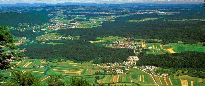 Pogled na novomeško podolje iz Pogorelca nad Podturnom. Foto Marko Pršina.